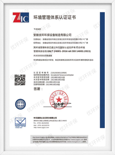 Certificate of Environmental Management System Certification