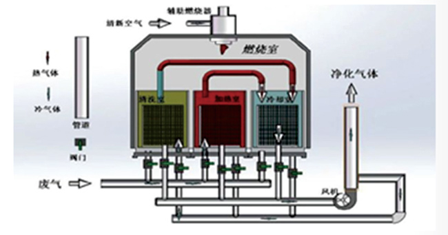 A Regenerative Thermal Oxidizer (RTO) is an energy-saving environmental protection device used to treat medium and low-concentration volatile organic waste gases. Its basic principle is to oxidize organic waste gases at high temperatures to generate CO₂ and H₂O, thereby removing the pollutants. The device is characterized by the integration of a regenerative heat exchanger. Due to its high thermal efficiency (over 96%), it achieves the effect of energy-saving oxidation.